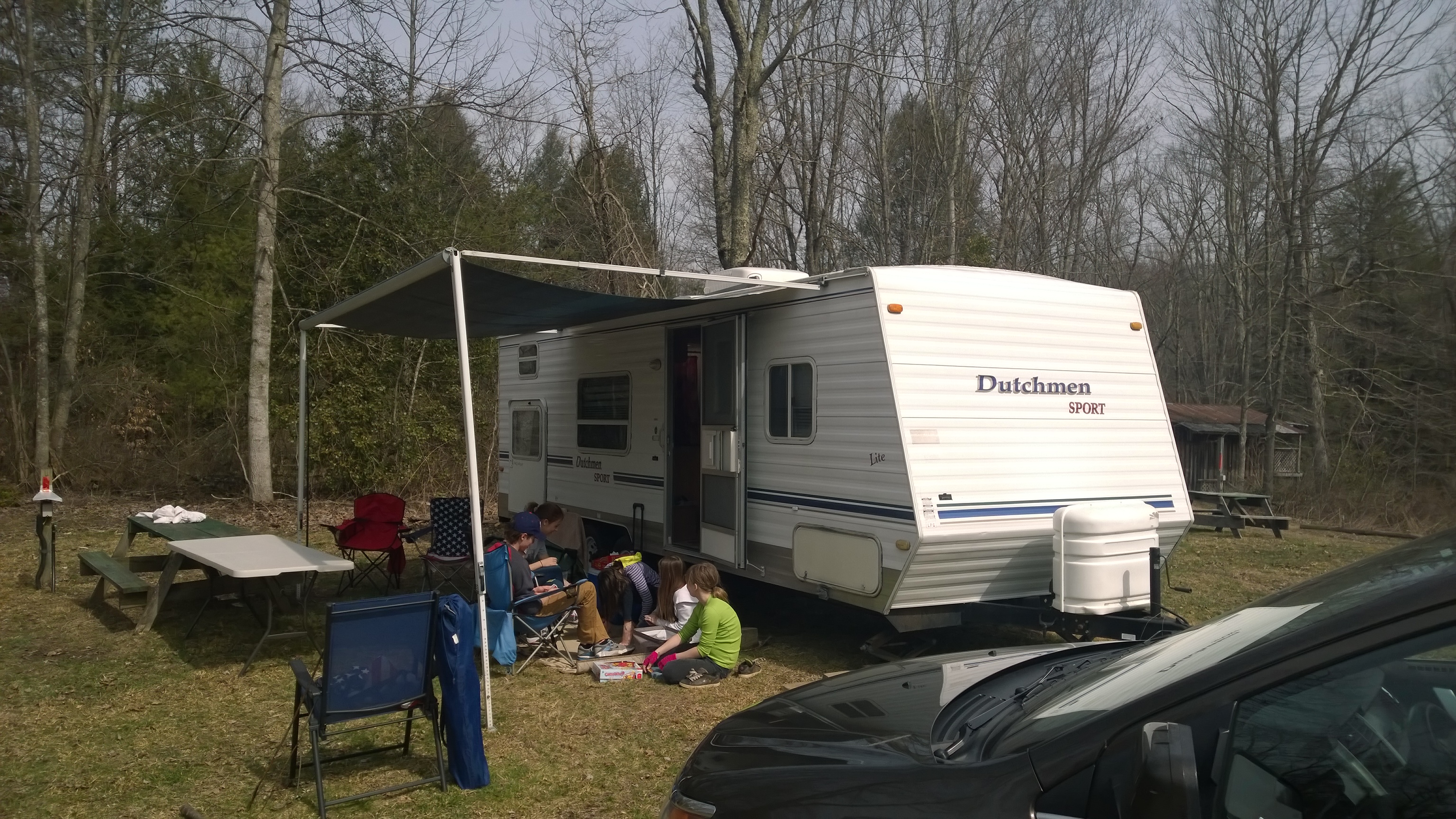 So this is my 2003 Dutchmen Sport 26′ TT (Travel Trailer) graduating from an old popup that we loved. I bought it this year from a friend and it is in really good shape. What’s wrong with this picture? Absolutely nothing. The kids are playing games, enjoying the outdoors and experiencing life outside the burbs. I’ll post some specs on the TT another time.