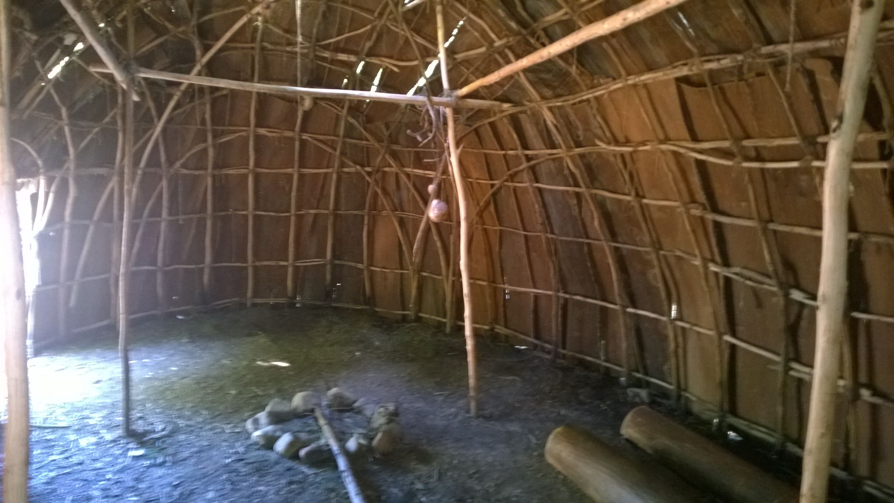 This particular structure was amazing. If you look closely, it is actually made out of bark. The Monocan Indians would wait for a particular time during the year when the sap was closest to the surface of the tree. At that time, they would score the tree bark vertically as well as around the bottom and top of the tree. They would then pull the tree bark off and go through a simple process of flattening the bark. By removing the bark it essentially created a water proof shingle. I spoke to the Indian at the exhibit and she mentioned that the bark would last approximately 4 – 5 years. This type of innovation and primitive technology is just fascinating.